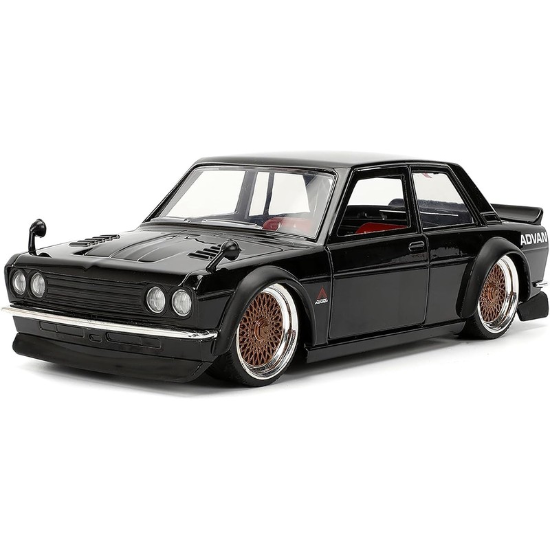 Diecast Model Car Compatible with Jada JDM Tuners 1973 Datsun 510 Advan Die-Cast Model Car, 1:24 Scale, Black 35954