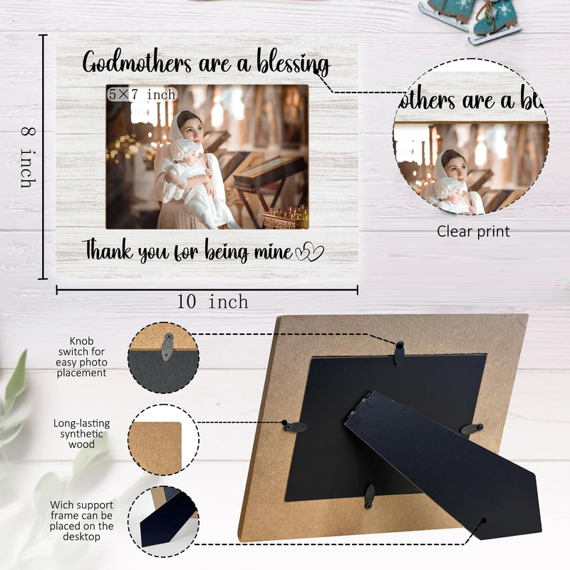 DIENADFX Godmother Baptism Aunt Picture Frame, Godmother Proposal Gift, Christmas Baptism Nina Godmother Gifts for Godmother from Godchild, Godmothers are a Blessing Photo Frame Frames for 5x7 Photos
