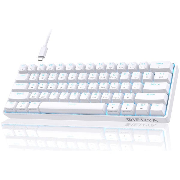 DIERYA 60% Mechanical Keyboard, DK61se Wired Gaming Keyboard with Blue Switches, LED Backlit Ultra-Compact 61 Keys Mini Office Keyboard for Windows Laptop PC Gamer Typist(White)