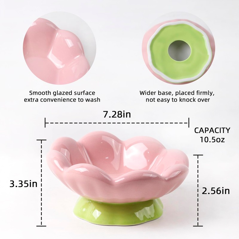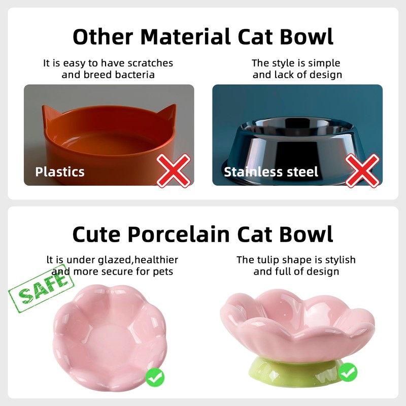 - 【CUTE TULIP SHAPE 】----- This cat food bowls elevated use unique flower design, is easy to decor your house look stylish in your home, safe bowl for your cats or small dogs.