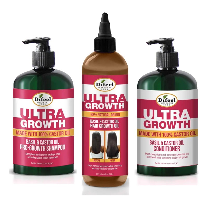 Descubre el poder de la naturaleza con el espectacular Difeel Ultra Growth Juego De 3 Piezas. Este exclusivo set combina lo mejor de la albahaca y el ricino para ofrecerte un ritual capilar único que transformará tu melena desde la raíz hasta las puntas. 🌱