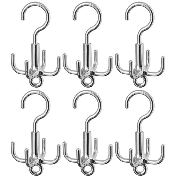DIFEIUKI 4 Prong Swivel Hooks, Set of 6, Scarf Hooks, Belt Hangers, 360 Degree Rotation, Space Saving, Storage for Small Items Hangers, Neckties, Scarves, Belts, Towels, Bags, Etc., Kitchen, Entryway,