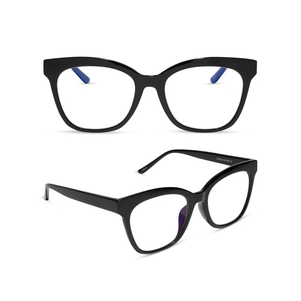 DIFF Reading glasses for Women, Lightweight oversized readers Willa 2.0 designer blue light glasses with magnification, Black