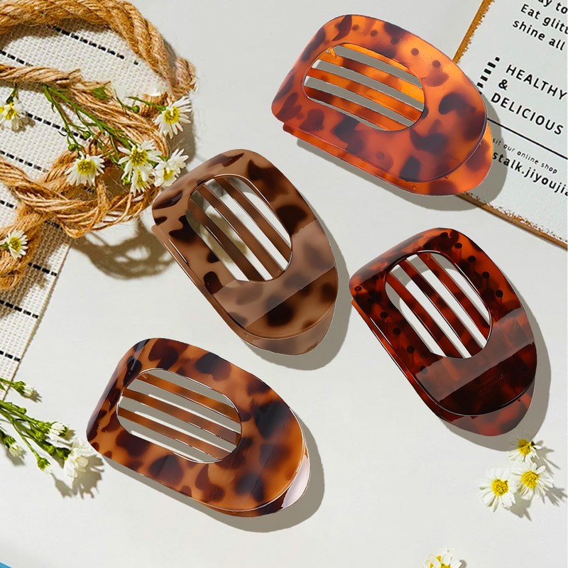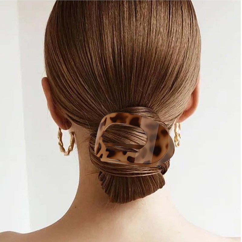 Diffaxy 4 Stück Entenschnabel Haarspange, gebogene flache haarklammern für feines Haar, mittellange runde flache Haarspangen, Damen Flat Claw Clip Haarklammer mit Leopardenmuster für Damen