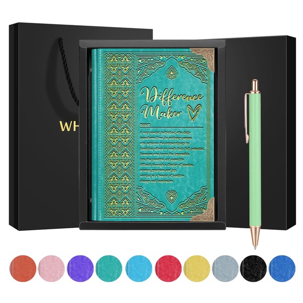 Difference Maker Definition A5 Notebook with a Pen Gift Bag and Gift Box Social Worker Gift Employee Appreciation Gift Coworker Gift,1 Pack (Green), (Difference maker-GreenCA)