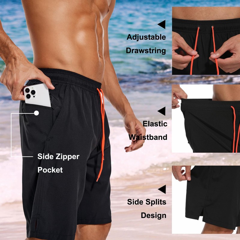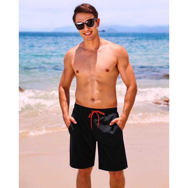 • Compression Lined Swim Trunks: 9 inch inseam long swim trunks with stretch boxer brief lining, super cool and comfortable, provide a supportive fit and protective coverage