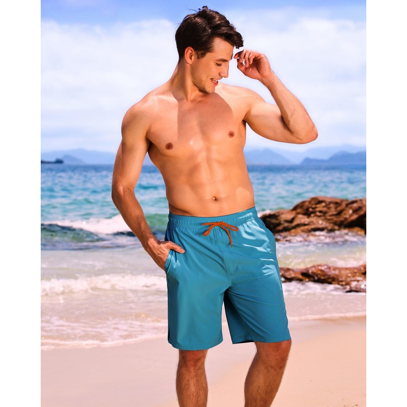 - Compression Lined Swim Trunks: 9 inch inseam long swim trunks with stretch boxer brief lining, super cool and comfortable, provide a supportive fit and protective coverage
