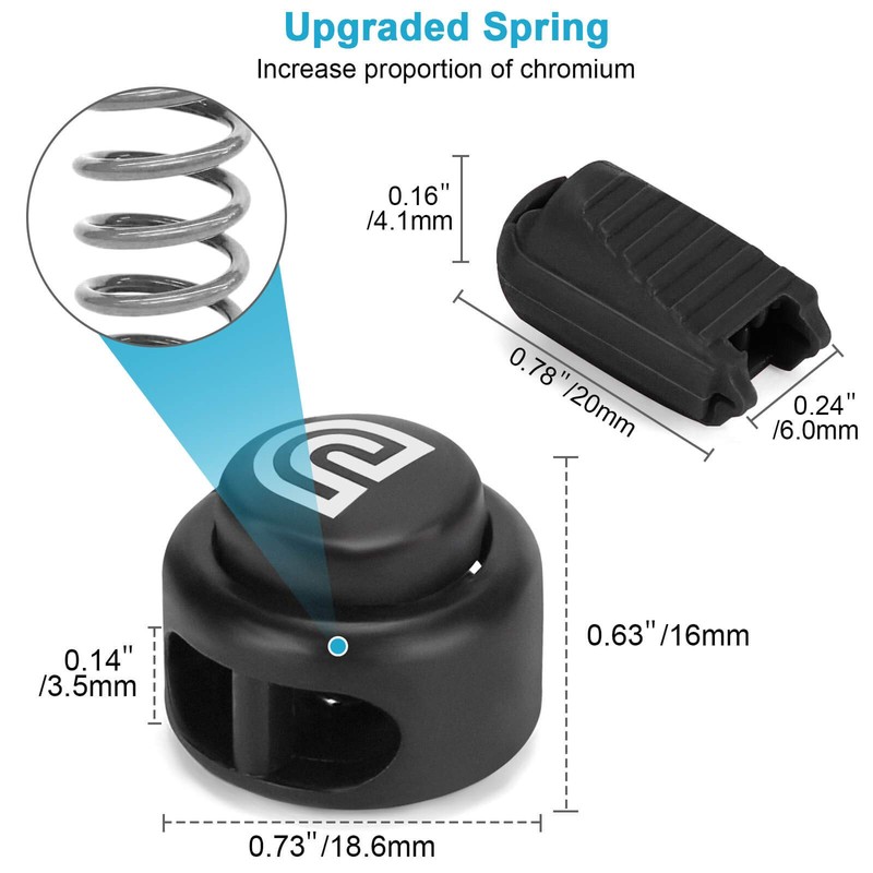 • 4. SMOOTHER OUTER SURFACE: The use of nylon and precise molds make our cord stopper and end clip surface smooth. Used on your shoelaces, pack drawstrings, backpacks, pant closures, outdoor hats and more is not only a non slip stopper, but also a work of art.