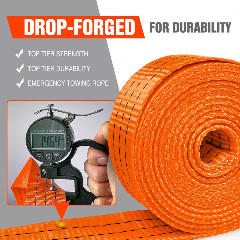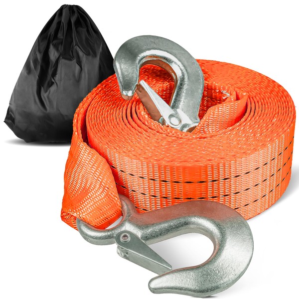 • HEAVY DUTY TOWING STRAP made from high-level polyester,Ultra high net weight 2.5 lbs, 2" wide, 20ft long heavy duty tow strap with 2 Hooks, Rated up to 6.8 tons max (15,000lb) load capacity