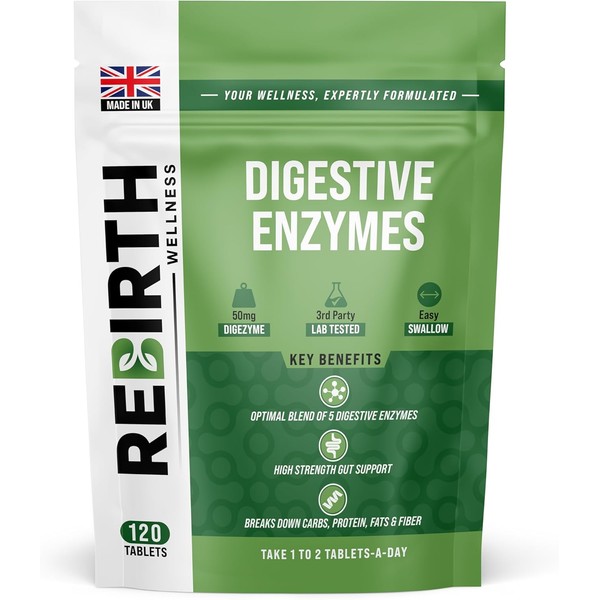 • ReBirth Wellness Digestive Enzyme Supplements - 120 Small 8mm Tablets in a Foil-fresh Resealable Pouch - Promote Digestive Health with Essential Enzymes for Lactose Intolerance, Bloating Relief and More