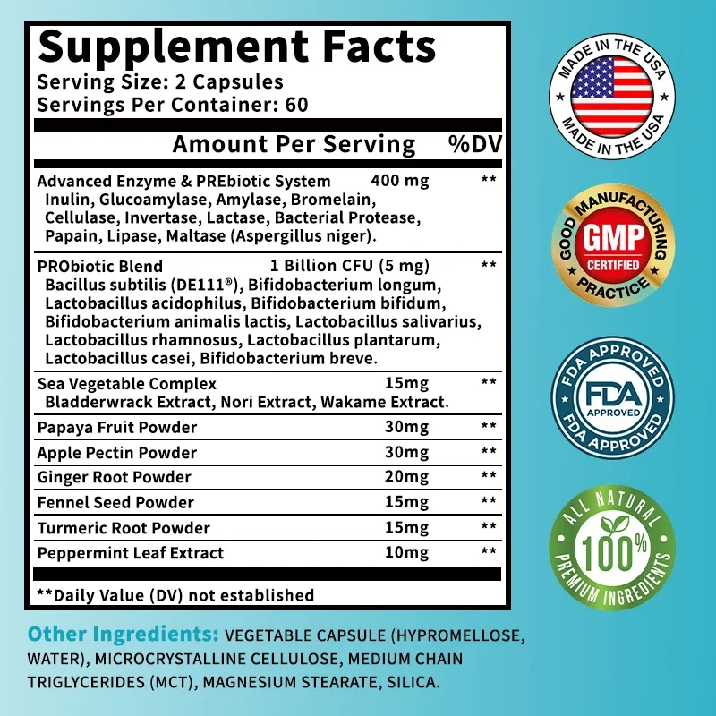Ingredients: Probiotic Enzymes, Prebiotic, Probiotics