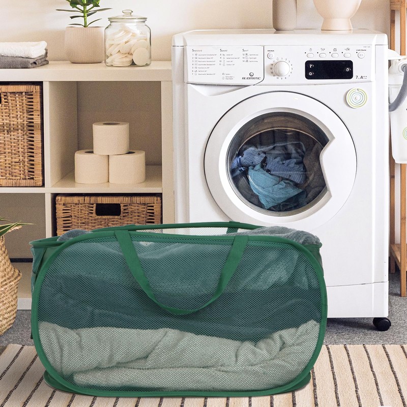 Diggoour Sturdy Collapsible Laundry Baskets- Pop Up Laundry Hampers with Handy Pocket, Foldable Clothes Hamper with Reinforced Carry Handles for Laundry, Bathroom, Kids Room, Dorm or Travel Green