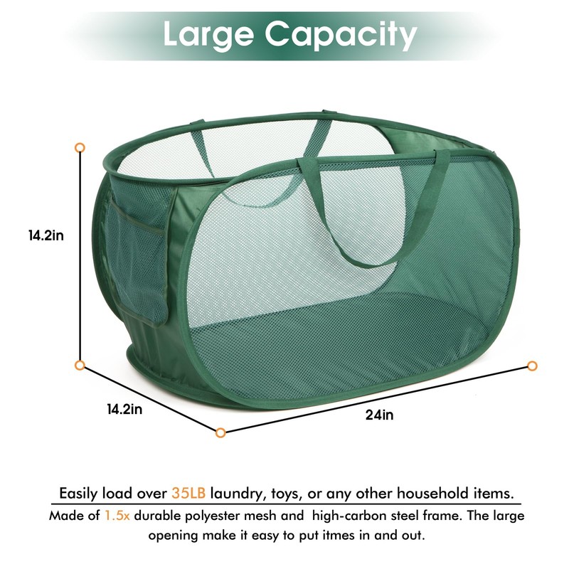 - Reinforced Carry Handles: The mesh laundry hamper's handles use sturdy but softer fabric, easy to carry a lot of items with more comfortable sense.