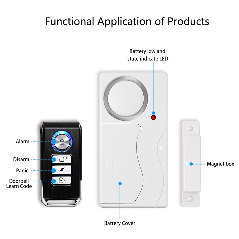 - Items Included: Door Sensor, Window Sensor, Remote Control, Alarm