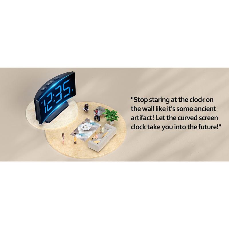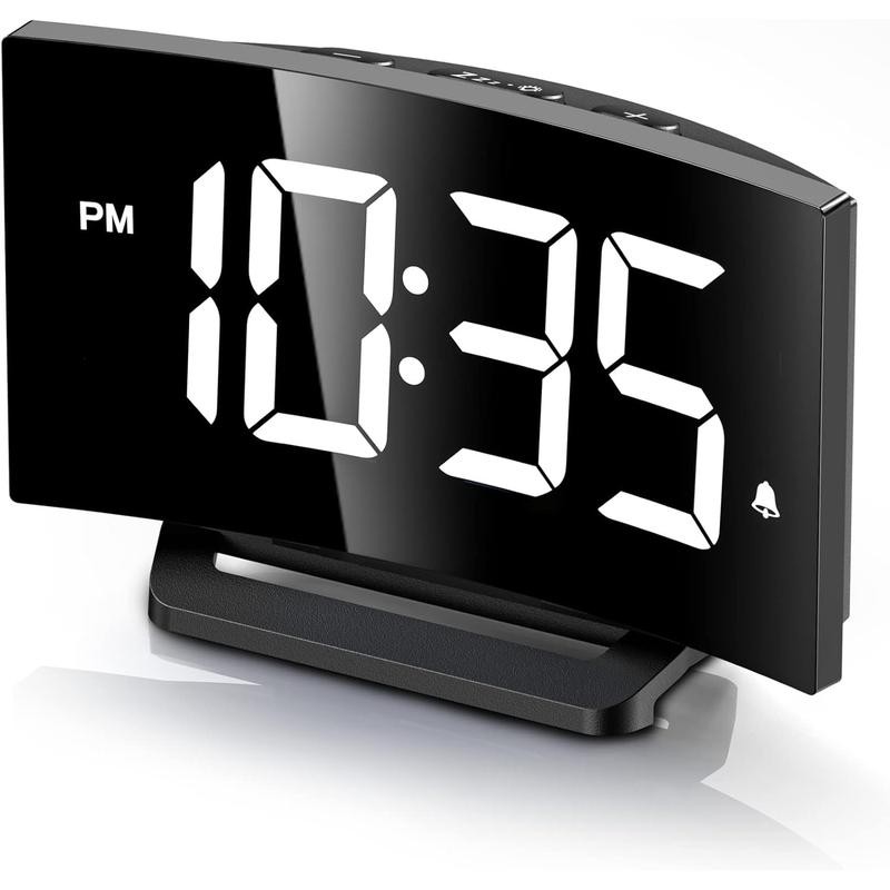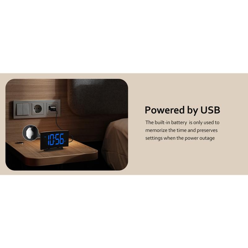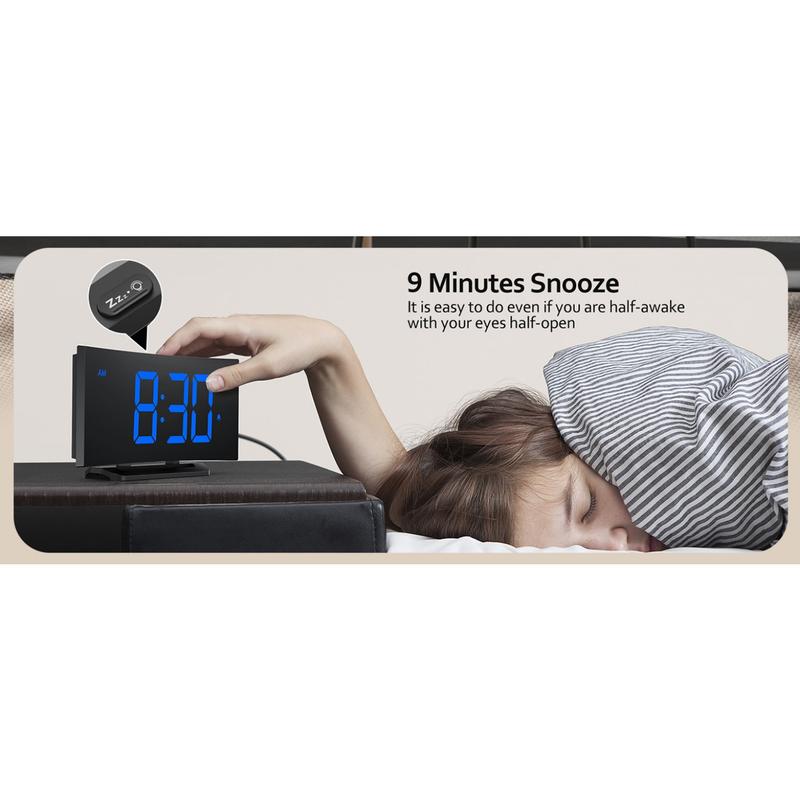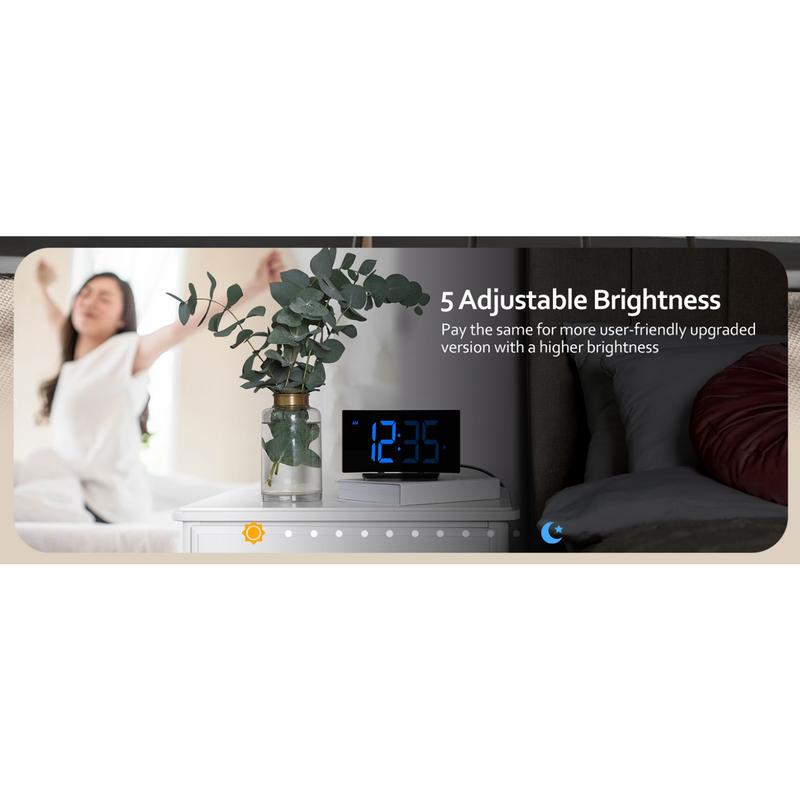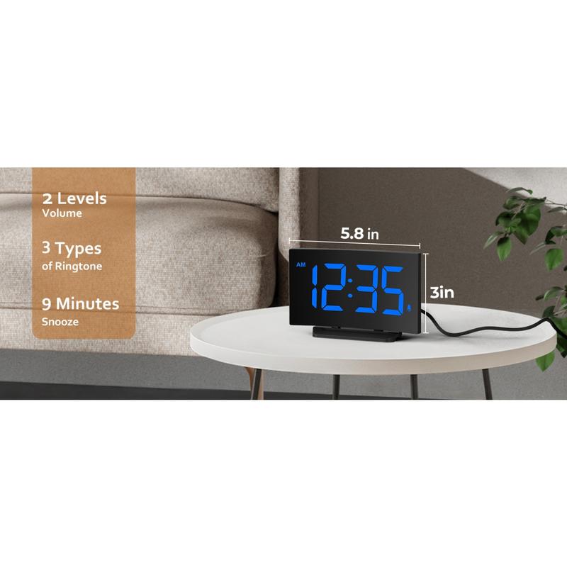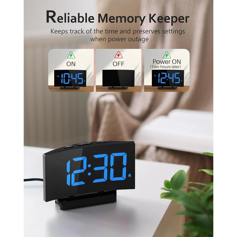 Digital Alarm Clock for Bedrooms, Digital Clock with Modern Curved Design, Conspicuous Blue LED Numbers, 5 Levels Brightness+Off, 2 Volume, 3 Alarm Tones,Power-Off, 12/24H alarm clock - Color: White Digit