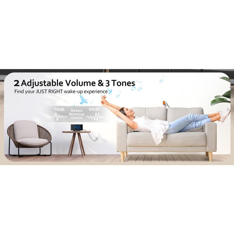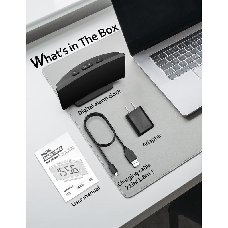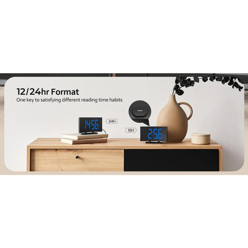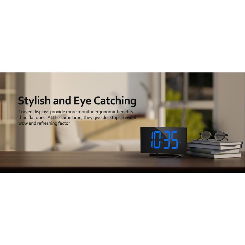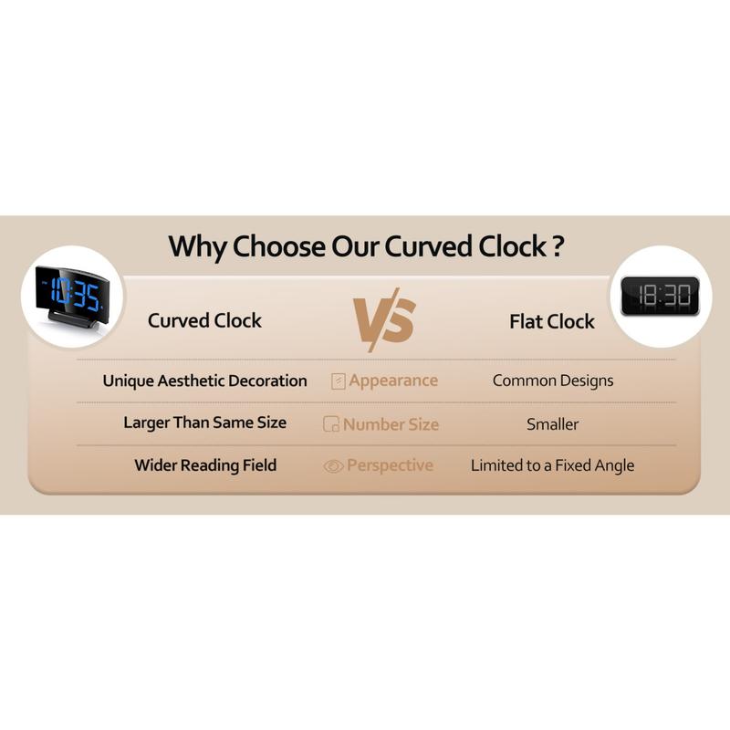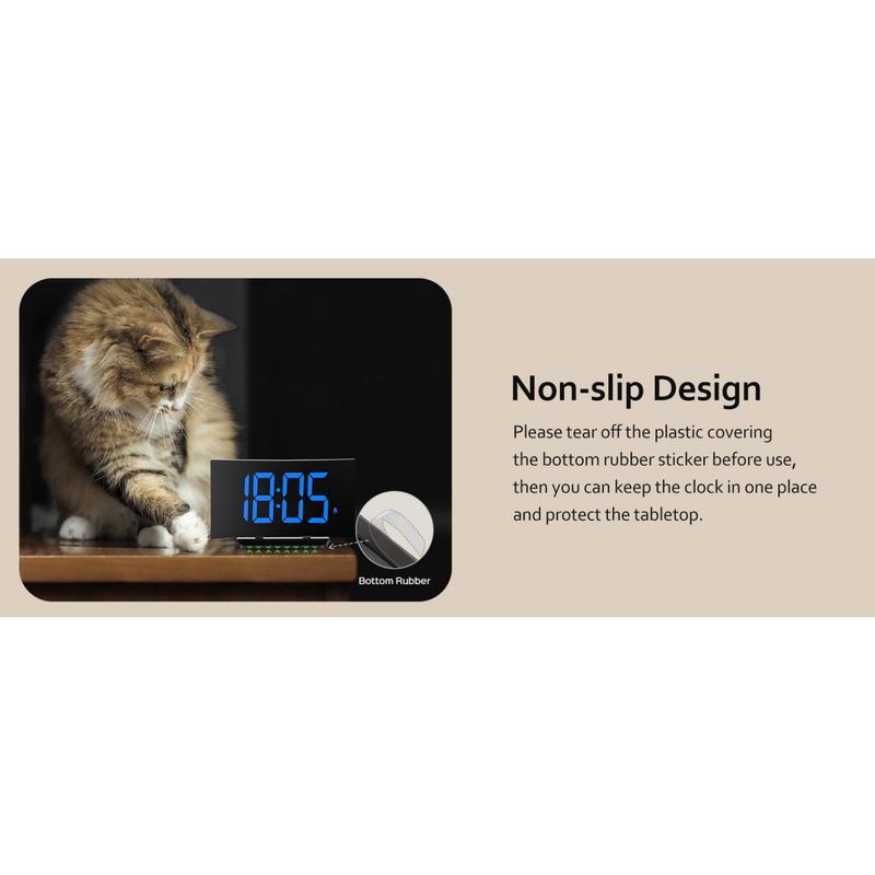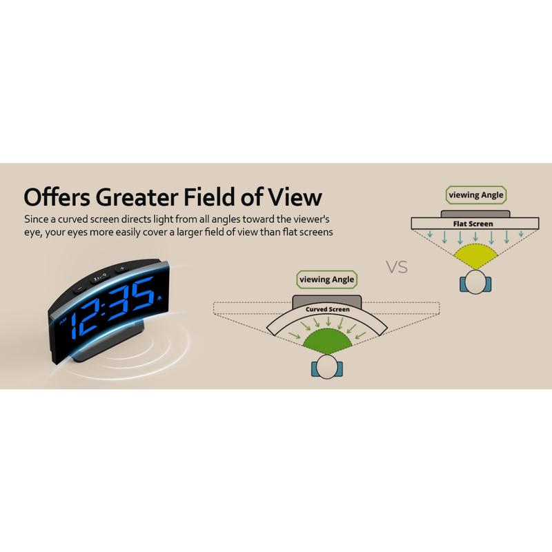 Digital Alarm Clock for Bedrooms, Digital Clock with Modern Curved Design, Conspicuous Blue LED Numbers, 5 Levels Brightness+Off, 2 Volume, 3 Alarm Tones,Power-Off, 12/24H alarm clock - Color: White Digit