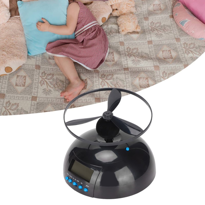 - Interesting way to wake up: When the alarm goes off, the propeller rotations fly around the room. To turn off the alarm you need to get up and find the propeller and put it back on the base.