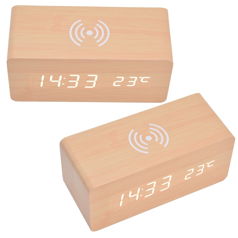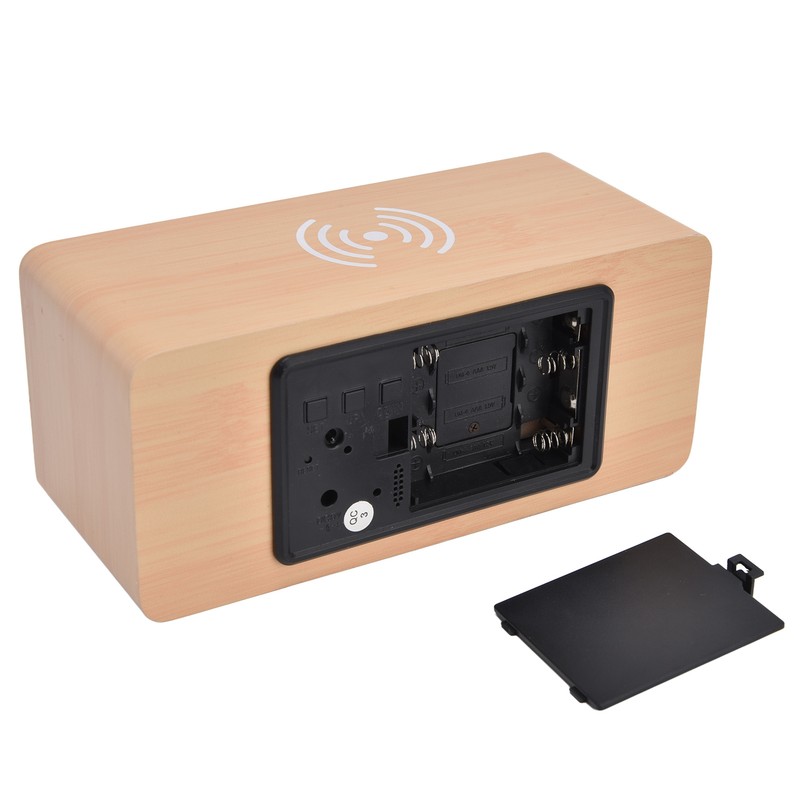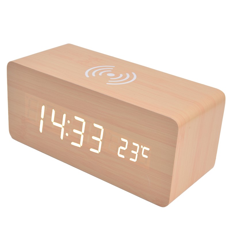 1、Automatic Temperature Detection: The temperature is automatically detected, and the alarm button can be switched to automatically detect the temperature, which is convenient for viewing. 2、Three Alarm Settings: Three groups of alarm settings, suitable for different needs, can reasonably plan your life and work. 3、Wireless Charging: The alarm clock is wirelessly charged, adopts a simple charging method, and does not need a data cable connection. 4、Safe Stable: Using sophisticated production technology, the alarm clock is safe and stable, simple to operate and easy to use. 5、Brightness Automatic Switching: The brightness is automatically switched in different time periods. Enter night mode, the brightness will automatically dim, enter day mode, the brightness will automatically become brighter.