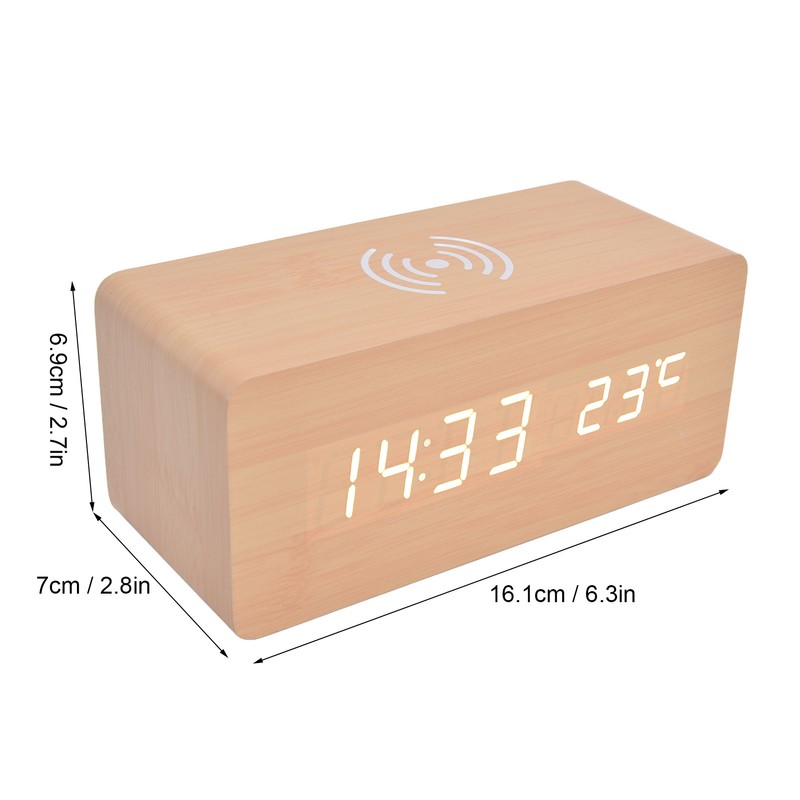 Digital Alarm Clock Wireless Charging Automatic Temperature Detection Safe St...