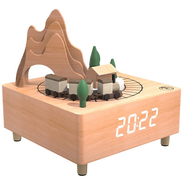 Digital Alarm Clock, Wooden Table Clock, Music Box Clock, Alarm Clock, Put You On, Train Automatically Rotates to Align with the Railroad