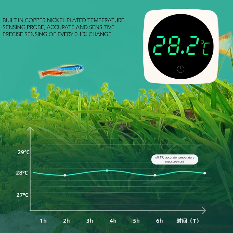 - HIGH ACCURACY The aquarium thermometer has a built-in copper nickel plated temperature sensor with high accuracy to accurately detect any change of 0.1 degrees Celsius, which can ensure that the fish are at a