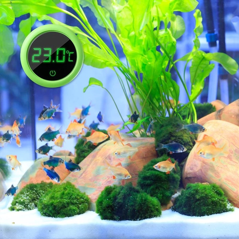 - Wireless design. The fish tank aquarium is equipped with an external digital thermometer, wireless temperature measurement and an accurate measurement of the most suitable water temperature for all types of fish. Monitor the temperature of the aquarium and aquarium at any time