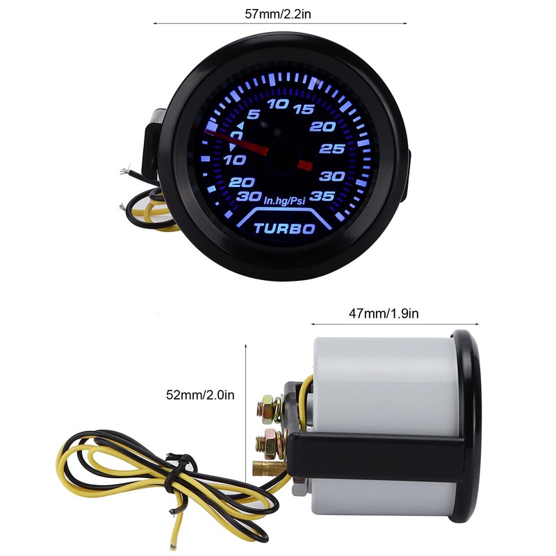 • Enhanced Pressure Measurement: Elevate your monitoring capabilities with this turbo boost gauge featuring a gauge measure range of up to 35PSI. Accurately track the pressure of your automobile's turbo system with precision and reliability.