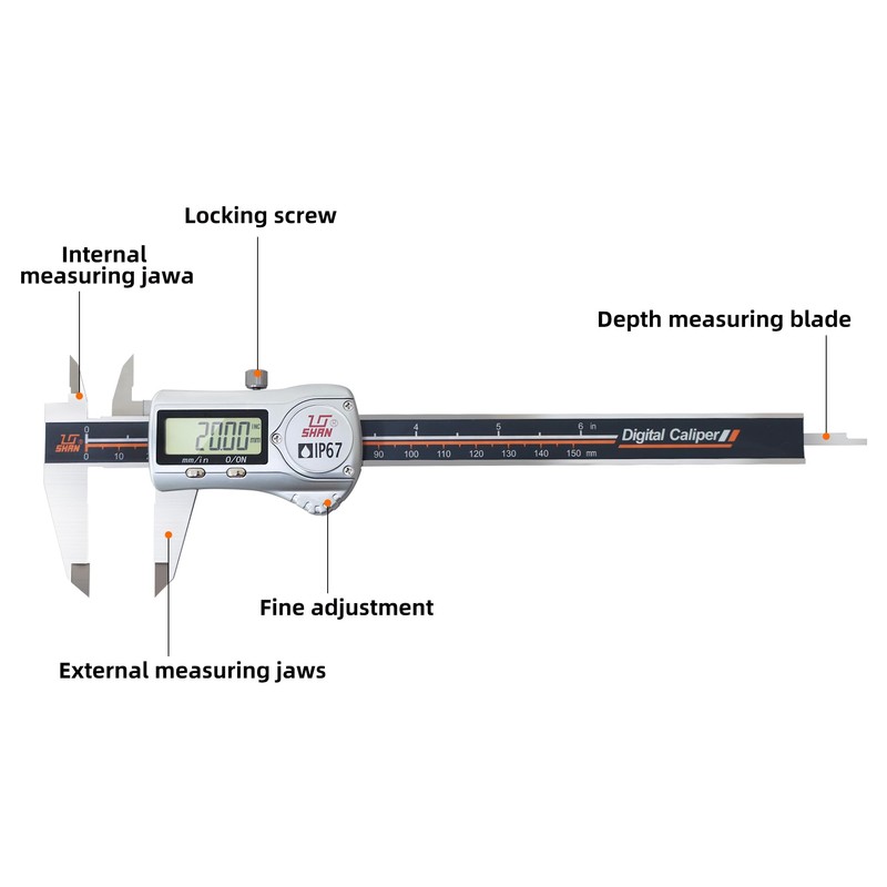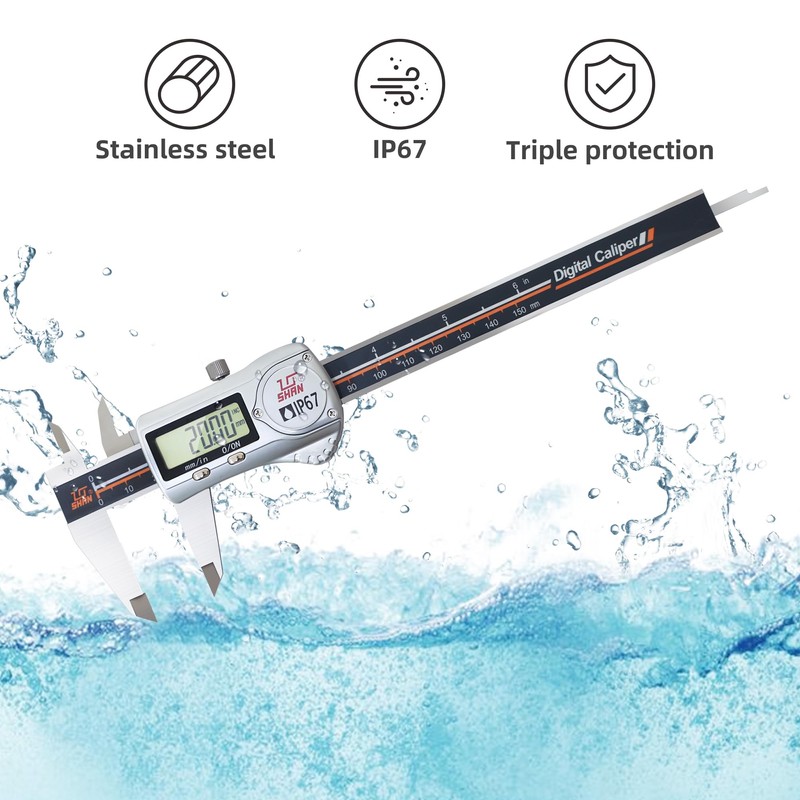 • 【All Metal Stainless Steel waterproof caliper】IP67 calipers are high quality and are made of high strength stainless steel with dirt-proof, waterproof, anti-rust,and oil-proof features. Perfect appearance and precise cutting. All metal construction make digital caliper more stronger, durable, longer service life.