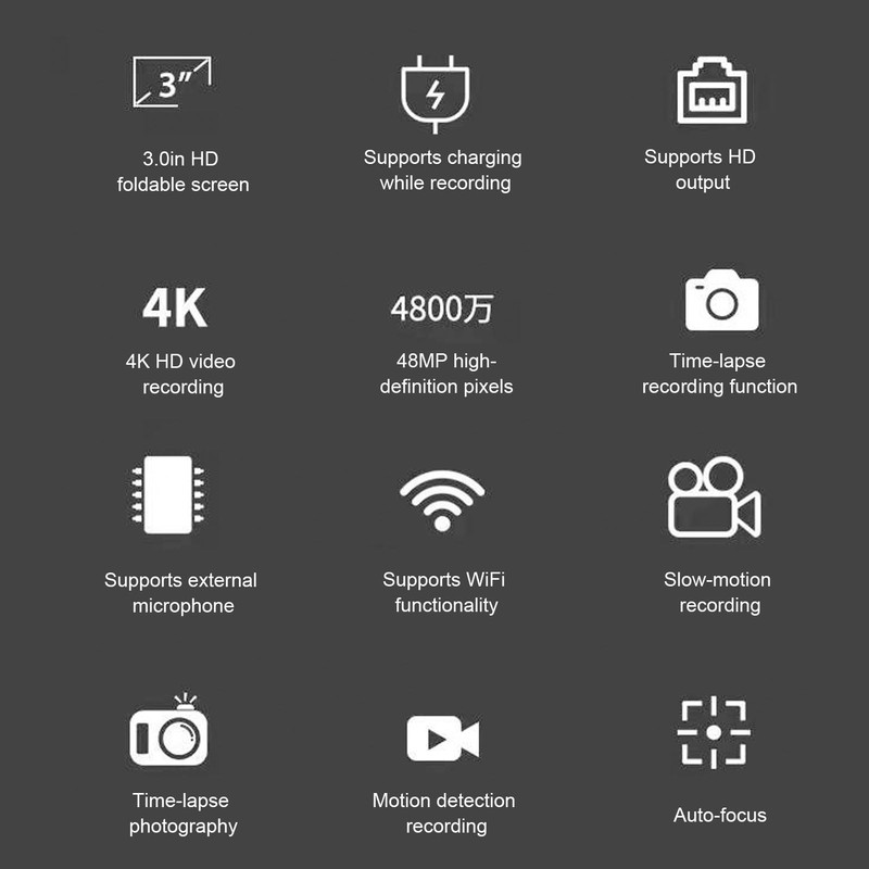 - 16x Digital Zoom and 180 Degree Flip Screen: This 4K Vlogging camera features a 3.0 inch screen that can be flipped 180 degrees, making it convenient for you to shoot from multiple angles. The compact 4K digital camera has a 16x zoom capability without compromising image quality, and the high pixel resolution allows you to enlarge photos to larger sizes without sacrificing image quality, making it ideal for capturing distant landscapes and all your precious moments with clarity.