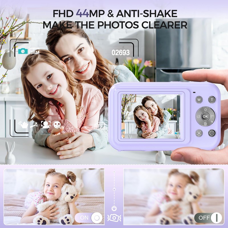 - 【FHD 44MP & Anti-Shake make the photos clearer.】- The digital camera uses an upgraded CMOS photosensitive system to take FHD 44MP photos. It is also equipped with Anti-Shake function, which can take natural and clear photos with a simple setup, and the white balance can be adjusted to capture natural photos in a variety of environments.