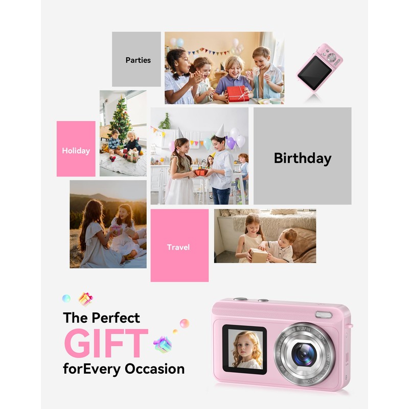 - Easy for Beginners, Fun for All Ages- With simple controls, a user-friendly interface, and a large LCD screen, even a 5-year-old can use it easily. The digital camera automatically adjusts colors—no settings required. Just press the shutter and capture memorable moments effortlessly