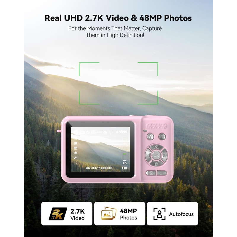 - UHD 2.7K Video & 48MP Photos- Capture stunning details in 2.7K video and 48MP photos. Whether you’re recording adventures or creating content for social media, this digital camera delivers vibrant, sharp results every time
