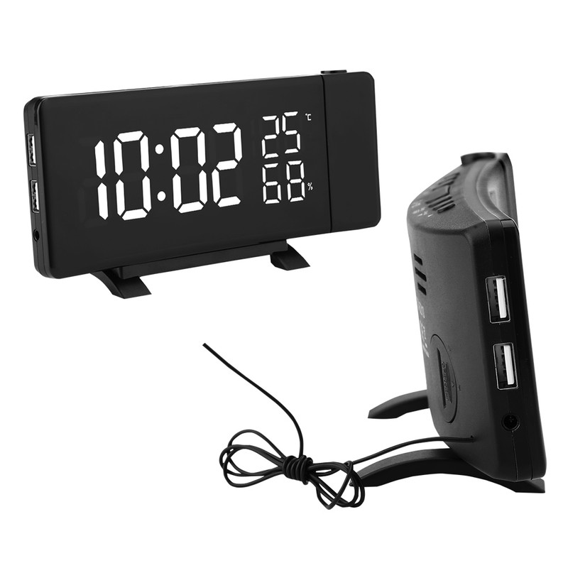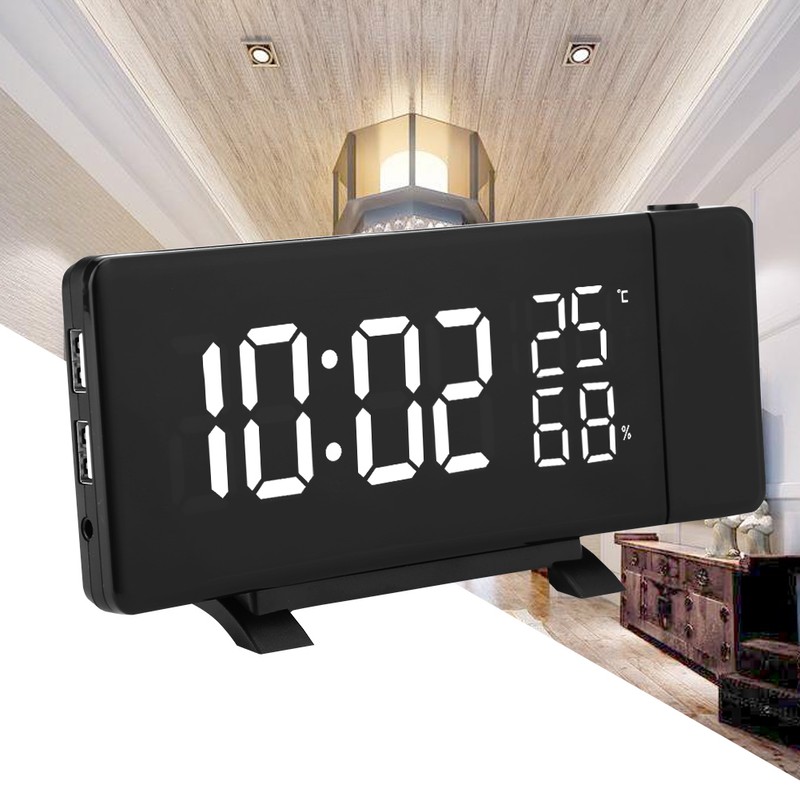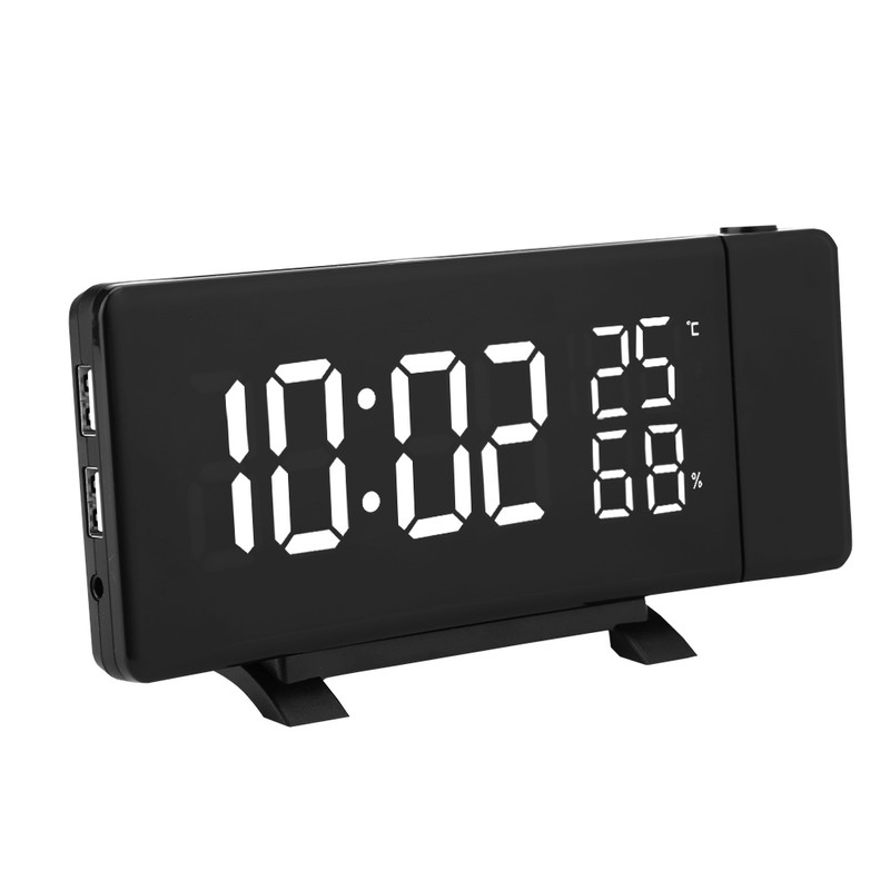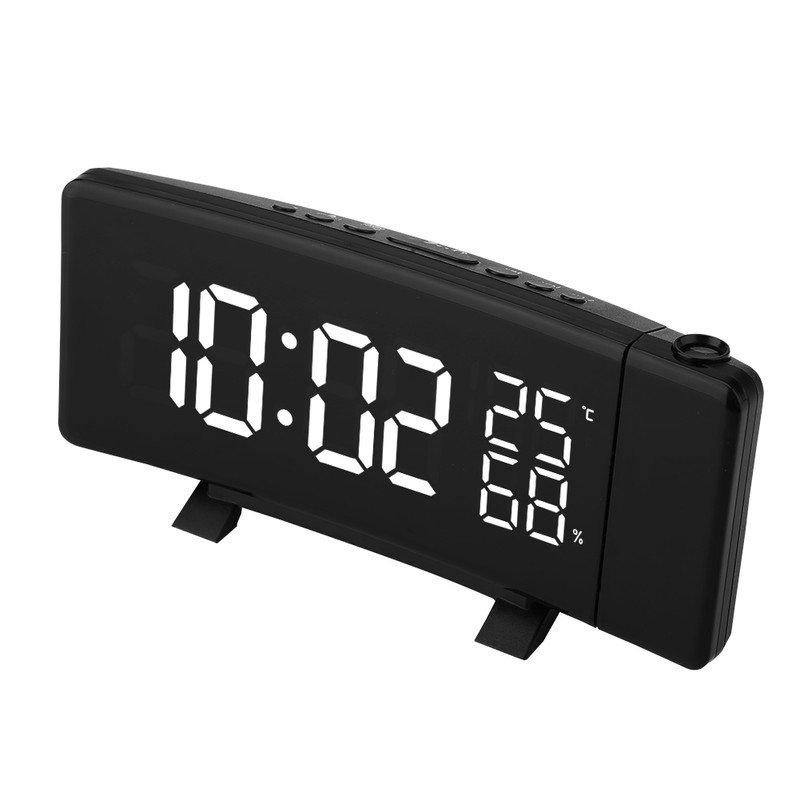 1、Digital clock with FM radio function. 2、LED display - Time, Temperature, Humidity 3、3 color free switching - Red, Blue, White. 4、Full digital screen and adjustable time projection for large screen enjoyment and easy watch at a glance 5、Ergonomically designed for a simple and elegant appearance