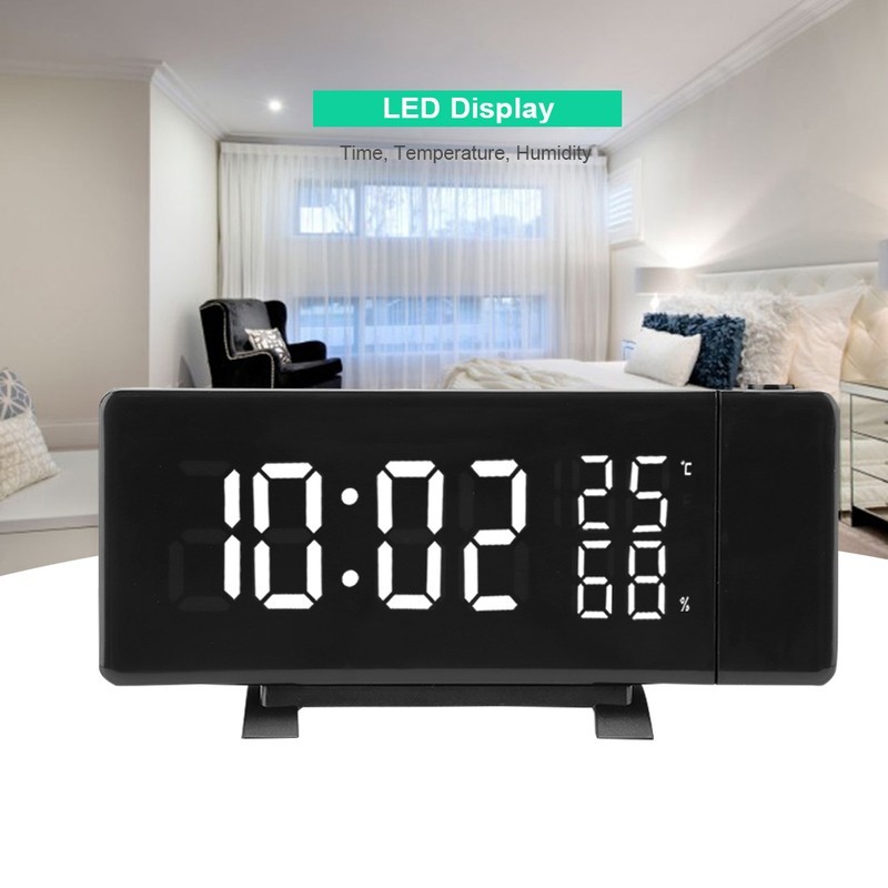 Digital Clock 3 Color Projection LED Switch Display Time Clock Temperature Humidity FM Radio 12