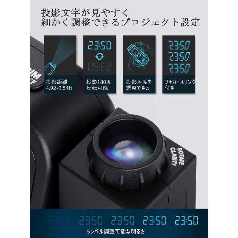Digital Clock, Wall Projection, Ceiling Projection Clock, Supports 350° Proje...