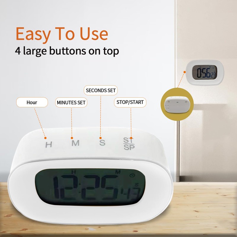 - Convenient time management with magnetic back: This kitchen timer can both count up and countdown range from 0~99hours 59minutes 59seconds. There are two magnets on the back which is strong enough to hold it up on a fridge/oven. Easy to stand on table/desk, or attach on iron wall, assists with organization and concentration, perfect for meeting, studying, nursing, homework, exercise, gym workout, cooking (ie egg timer), sports, games , exercise, homework, and teacher’s classroom activities.