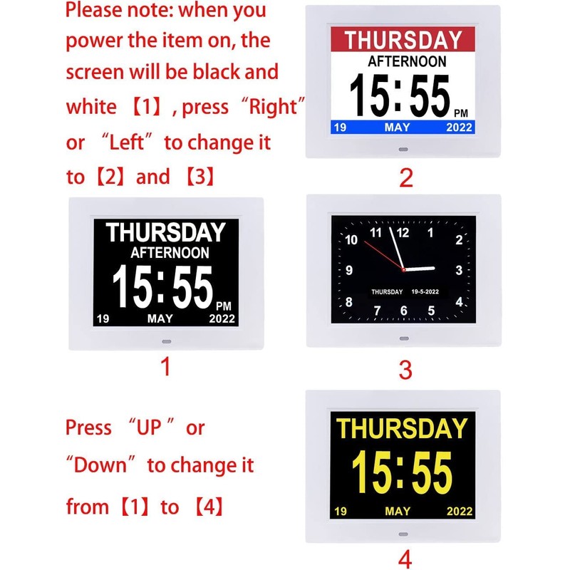 - ✅12 Alarm Options: This day of the week clock offers 12 alarms to help you remember important activities such as meals, medication, appointments, and more.