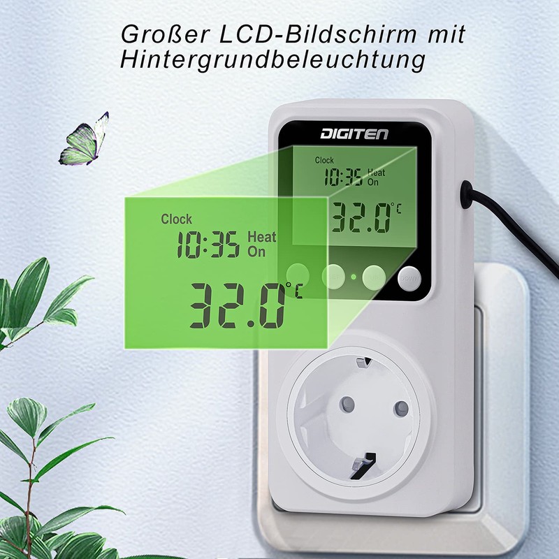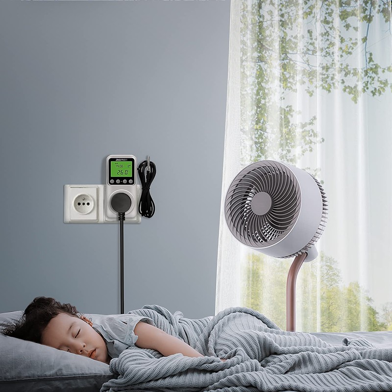 • Large LCD screen with backlight function. This day-night temperature controller has a plug and play design. The number on the screen is easy to read and programmable even in the dark. This high-precision temperature control can be accurate to a temperature of 0.1°C/°F. By setting the temperature difference, a temperature range can be controlled.
