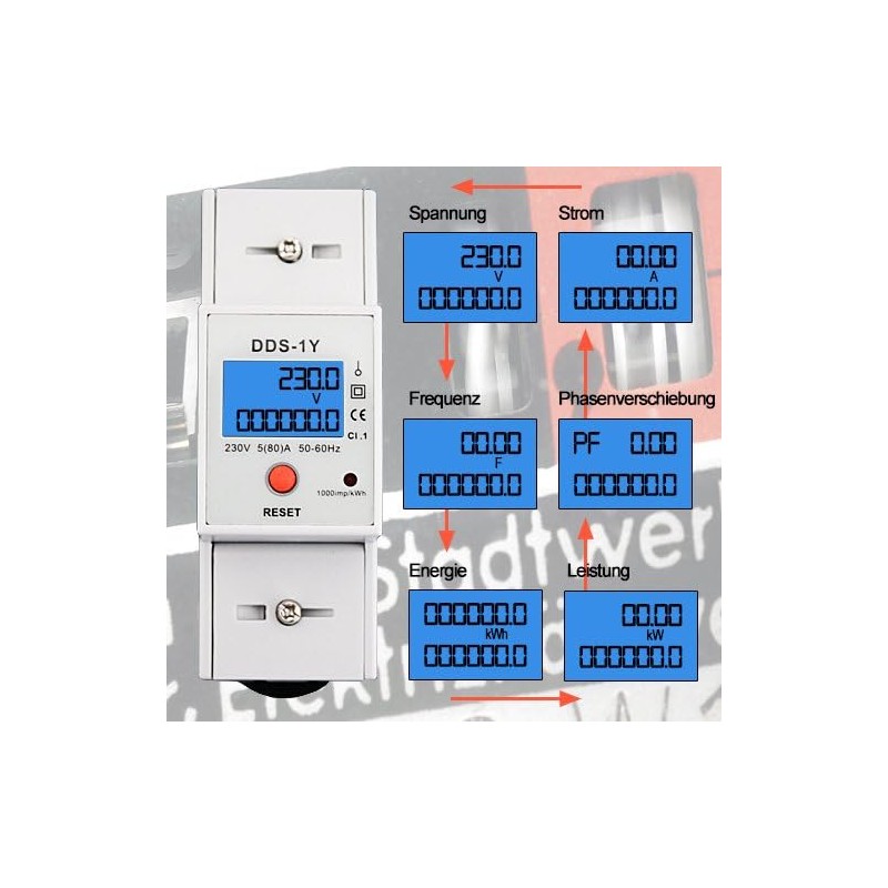 Digital Electricity Meter Single Phase Energy Meter DIN Rail *Individual Display Options eQ3 FHEM Smart Home Homematic ZZ3