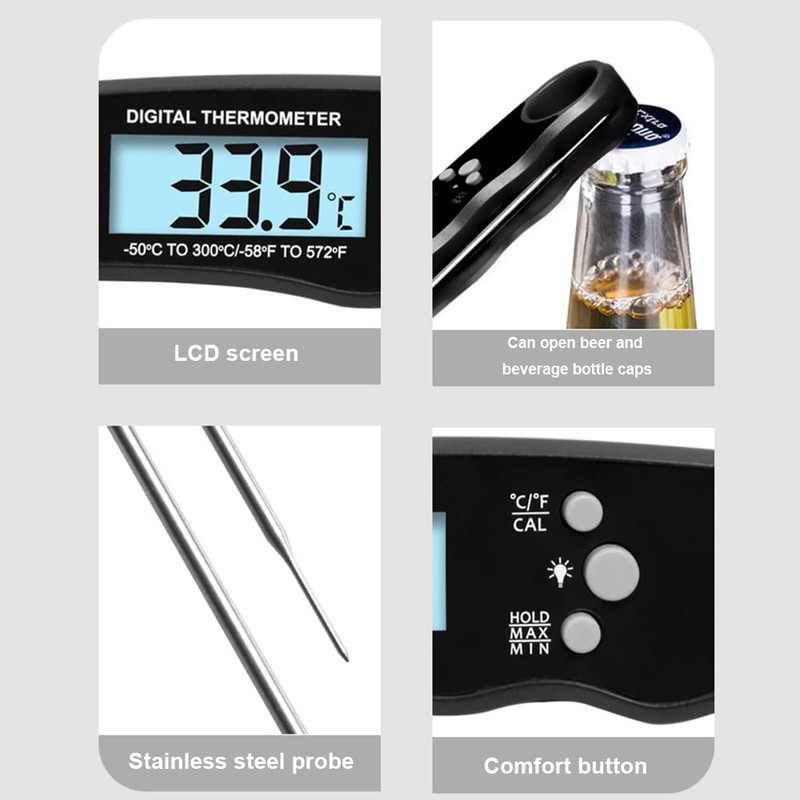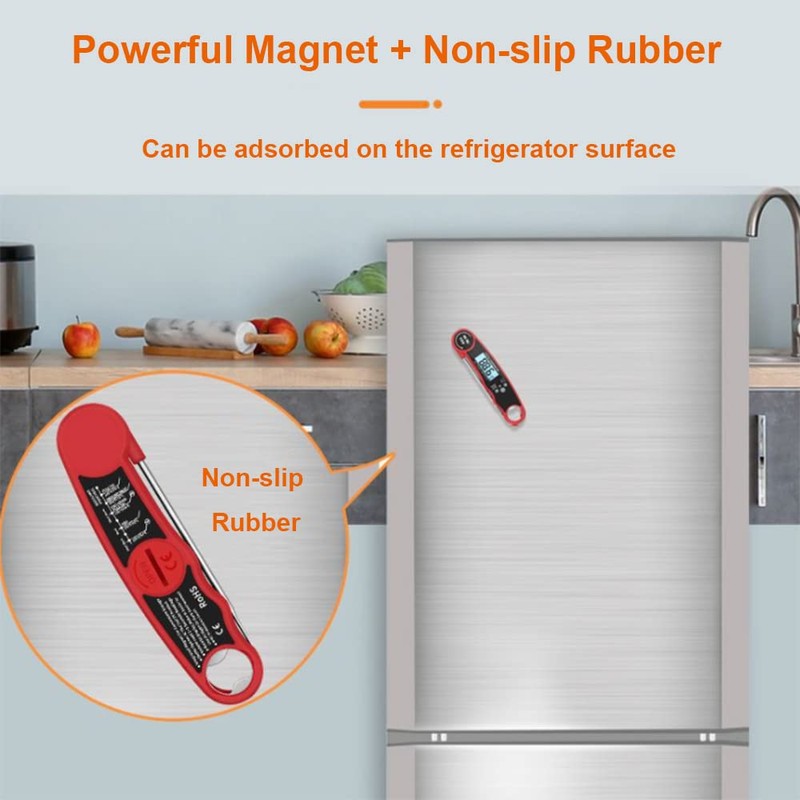【Wide range of applications】An accurate, fast and instant-reading thermometer, which can be used as oven thermometer, suitable for grilling, steak, milk, baking and even frying.