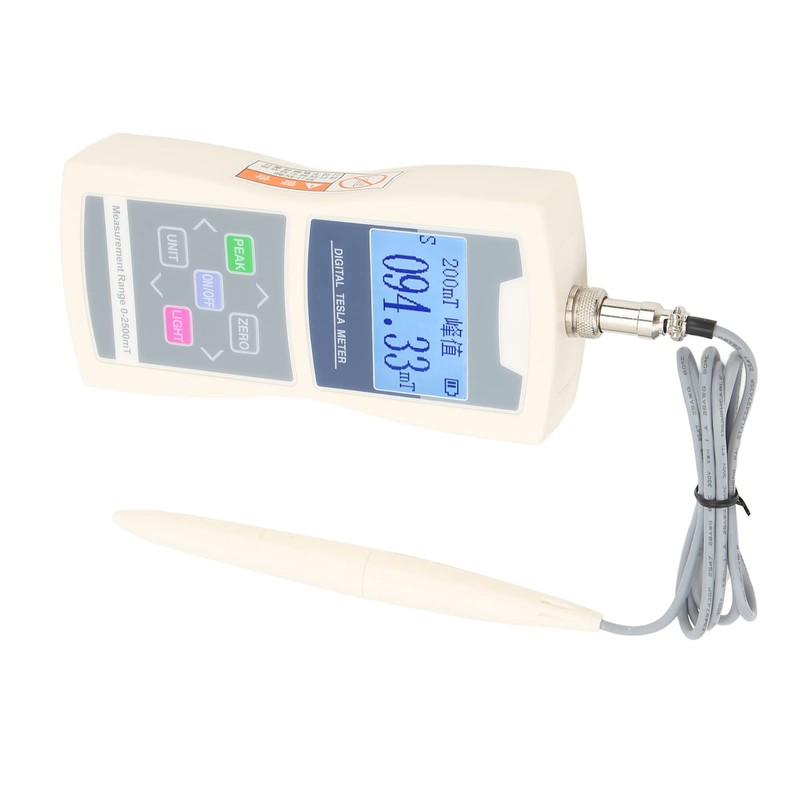 - Measuring Range: The magnetic field detector offers a measurement range spanning from 0 to 2500 milliteslas (mT) or 25000 gauss (Gs), accommodating both metric (mT) and Gaussian (Gs) units for versatile application.