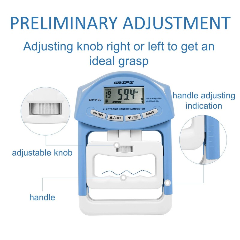 Digital Hand Dynamometer Grip Strength Measurement Meter Auto Capturing Electronic Hand Grip Power 198Lbs / 90Kgs, Blue
