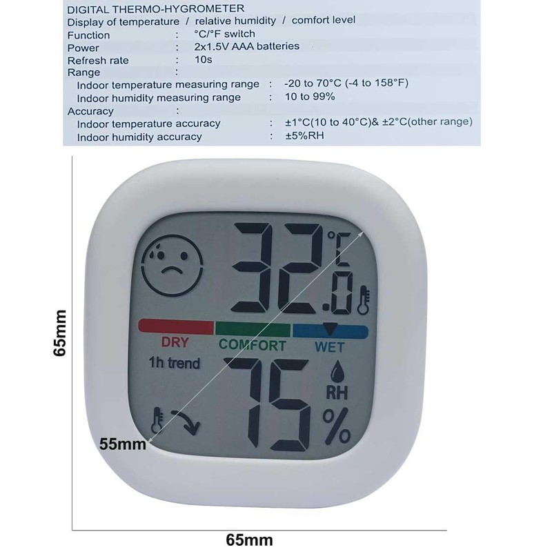 - [Air Comfort Indicator]: Our hygrometer features 3 different face icons to indicate DRY/COMFORT/WET air condition. Remind you to adjust your humidifier or dehumidifier accordingly and help you will always live in the most comfortable environment.