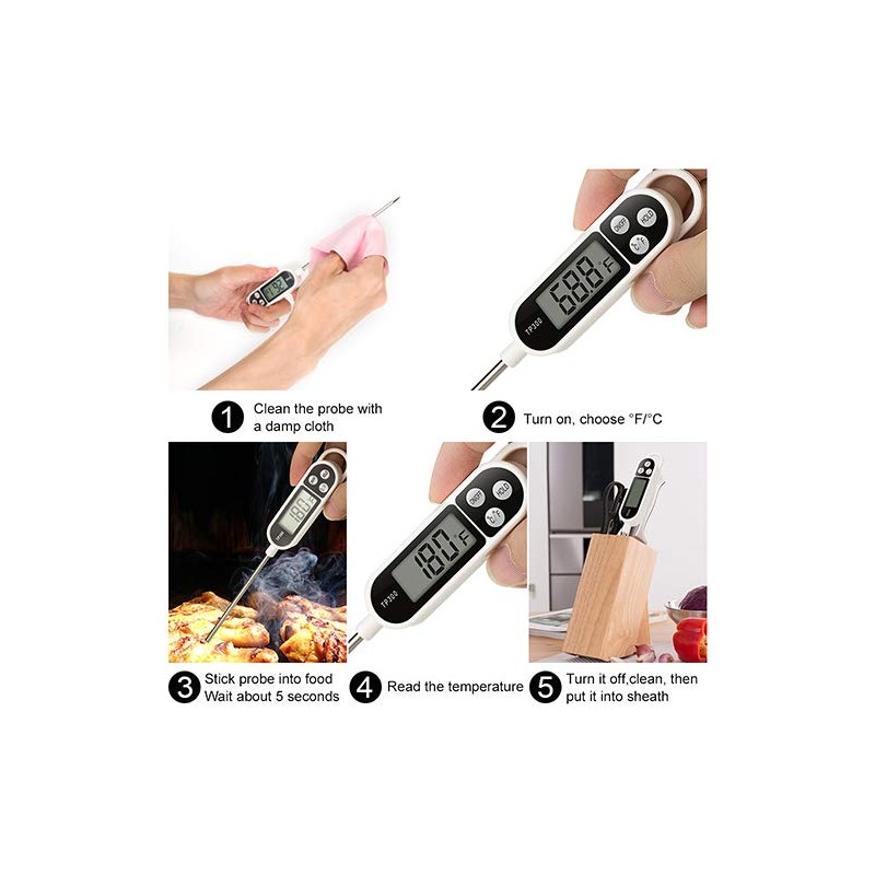 - WIDE TEMPERATURE TEST: Digital Meat Thermometer Range -58℉ ~ +572℉(-50°C ~ 300°C) ; It can be used in temperature sensing of many types of liquids, making your temperature measurement so simple.