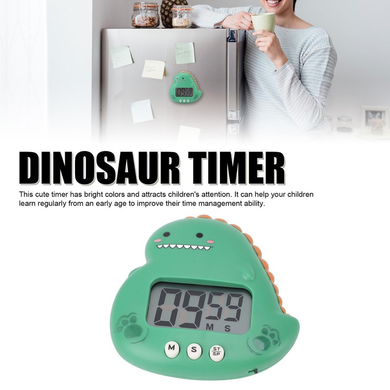 Digital Kitchen Timer, Cute Cartoon Dinosaur Digital Timer LCD Display Alarm Countdown Timer with Magnetic Backs and Stand for Classroom Home Study Cooking (Green)