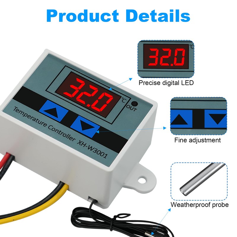 Digital LCD Display Temperature Controller XH-W3001, DC 12V 120W Thermostat Switch with Waterproof Probe Microcomputer Thermostat