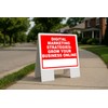 - Double-Sided Display – Features two 23"x23" sign panels for maximum visibility from both directions, making it ideal for sidewalk advertising, storefront signage, open house signs, and event promotions.