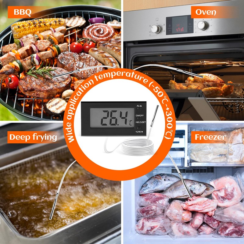 - 【Easy Oven Temperature Monitoring】The digital oven thermometer with LCD display clearly shows temperature readings, allowing you to monitor the temperature of your oven, grill, or smoker with ease.