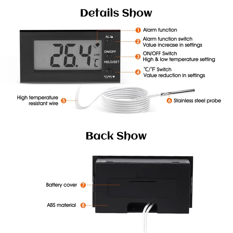 - 【User-Friendly Controls】 Simple control buttons let you power the unit on/off, set high/low temperature alarms, and adjust settings conveniently.