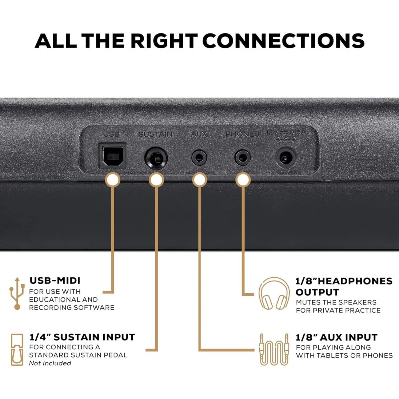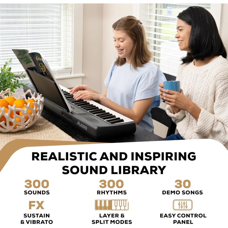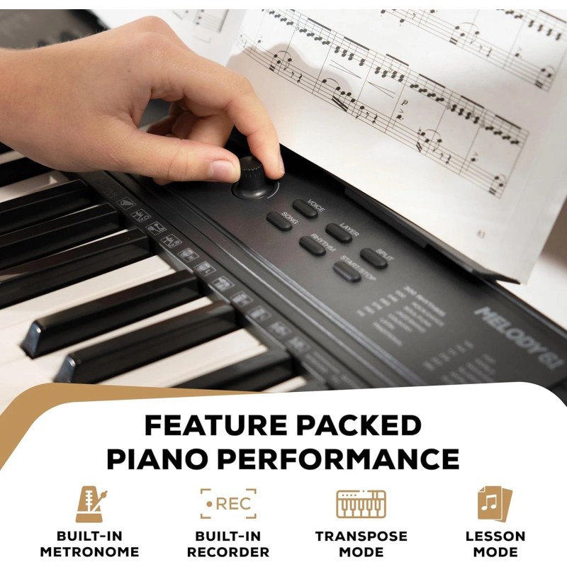 Digital Piano 61 Keys Compact Portable Beginner Keyboard with Built-In Speakers